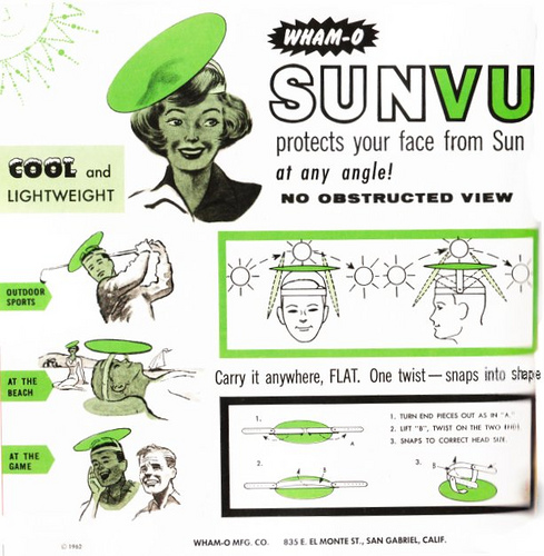I need to get a new pair of sunglasses (the low winter sun glinting off the snow or the ocean is murder on your eyes this time of year). But maybe I should get one of these things instead – so versatile! And it’s made by Wham-O so it’s got to be good.