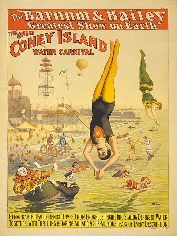 Coney Island Water Carnival Posted on July 7, 2011 by Matthew 0 I like the two people walking on water in what look likes wooden boat shaped shoes!