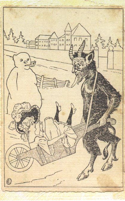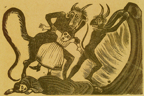 Hardly seems like a year since the last Krampus festivities! For those who don’t remember or know, Krampus is an old central European holiday on December 5 when the devil comes and takes away the bad little boys and girls – by dragging them away by their hair it would seem from these pictures. Apparently there is also something about the devil taking away women of suspect virtue as well. Punishing for sins. Meanwhile, the good children, woman of impeccable virtue, and all men are visited by good St. Nicholas instead!