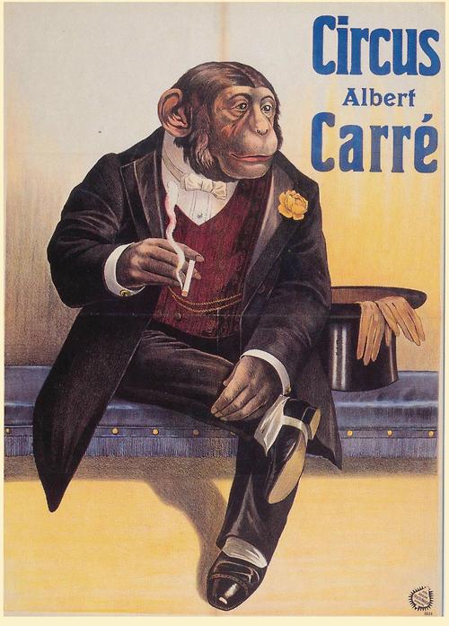 Chimp in a tux, having a smoke