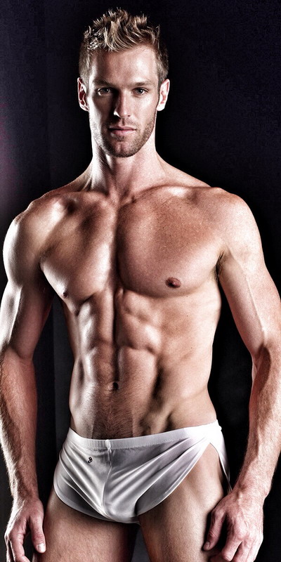 Model Levi Poulter wearing short-shorts