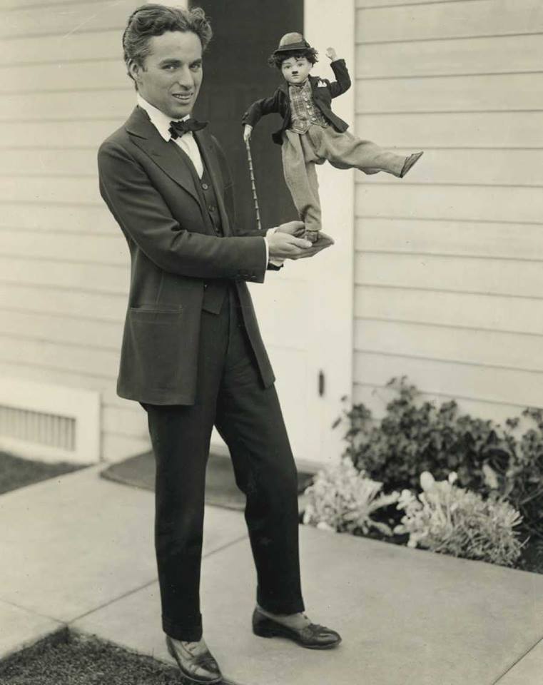 Charlie Chaplin and a little tramp doll