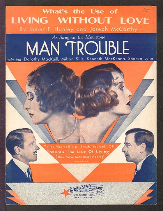 “What’s the Use of Living Without Love” as sung in the movie “Man Trouble”, 1930 Posted on August 20, 2017 by Matthew 0 Share this: Click to share on Facebook (Opens in new window) Facebook Click to share on X (Opens in new window) X Like Loading... Related
