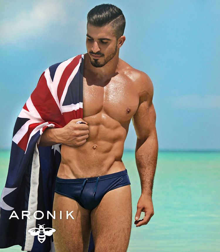 aronik australia 140 Published February 11, 2018 at 750 × 860 in Aronik swimwear model with an Australian flag
