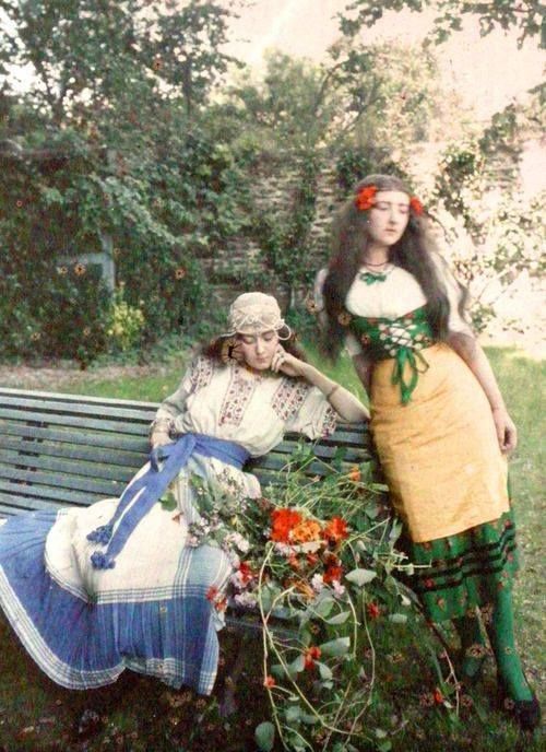 Vintage French ladies in a park