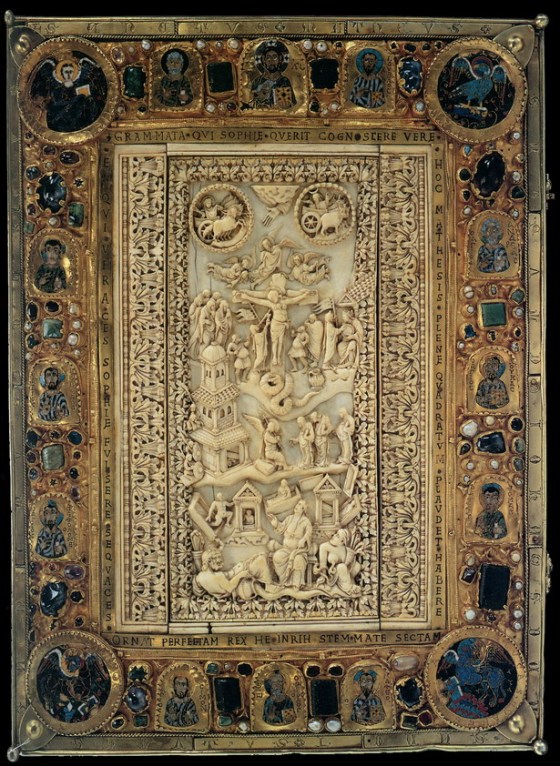 Yeah, I thought it probably was – the Jesus-on-the-cross and the twelve apostles around the edges were clues – but didn’t know for sure. As it turns out, it is not a bible cover but the cover of a Holy Roman Emperor’s book of gospel excerpts. It’s called the Pericopes Of Emperor Henry II , more info here: https://en.wikipedia.org/wiki/Pericopes_of_Henry_II
