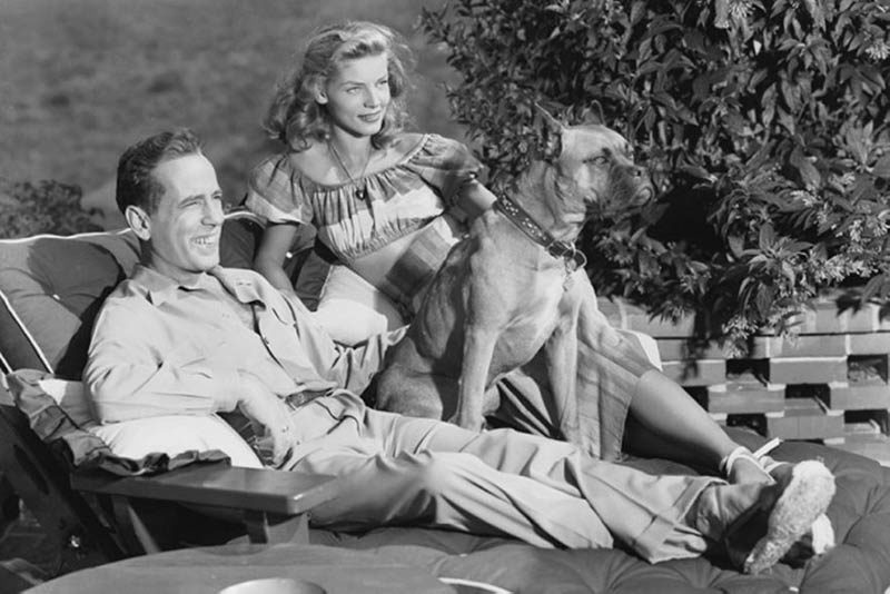 bacall-boxer Published April 8, 2019 at 800 × 534 in Bogart & Bacall at home with one of their dogs, 1940s