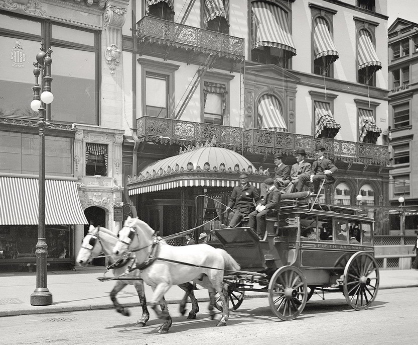 NYC 5th AVE BUS 1900 Published April 20, 2019 at 833 × 686 in Horse drawn public bus, 5th Avenue route, NYC, 1900