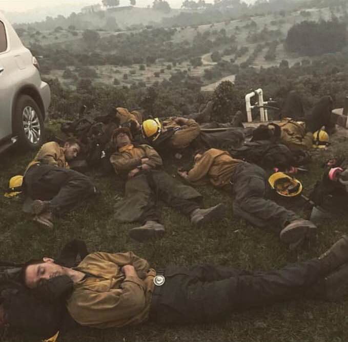 FOREST FIREMEN RESTING CA 2018 Published April 27, 2019 at 679 × 668 in Forest fire fighters getting some rest, California, 2018