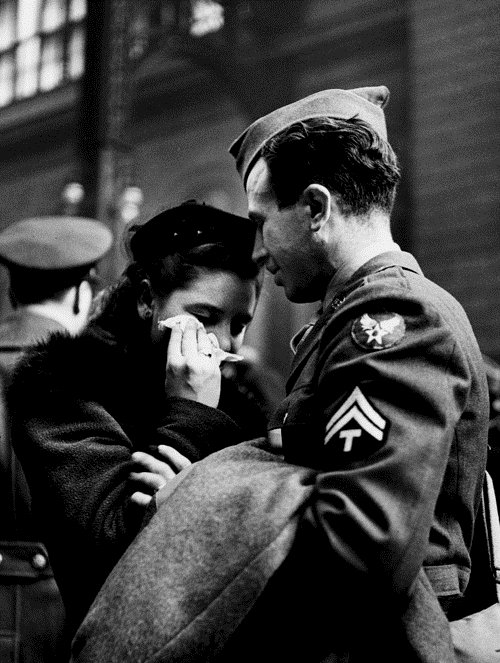 WWII SOLDIER GOODBYE Published May 3, 2019 at 500 × 663 in Saying goodbye to soldiers as they leave for war ← Previous