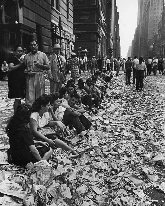 WWII VE DAY MAY 8 45 Published May 8, 2019 at 640 × 799 in Sitting amongst the confetti after the WWII victory parade in NYC on May 8, 1945