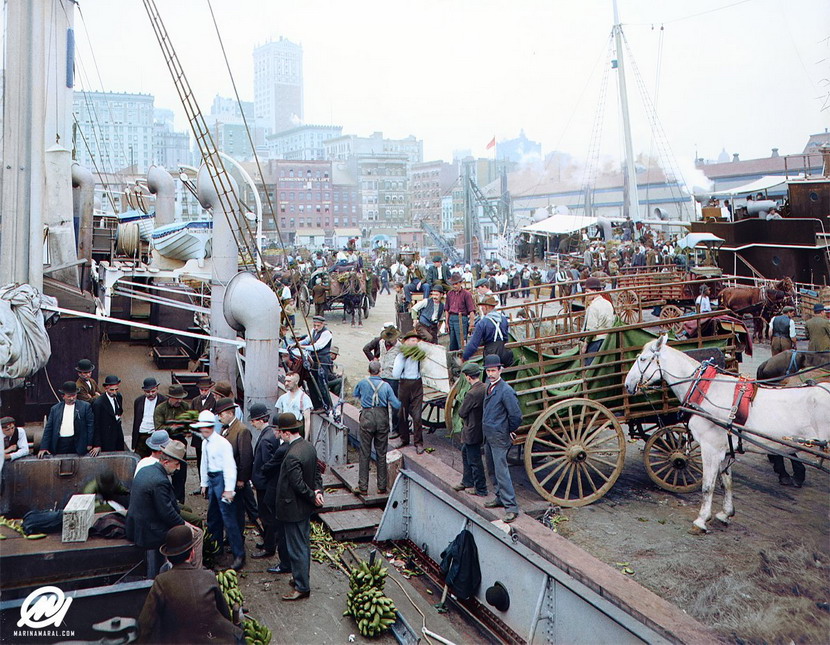 banana boat NYC Published June 18, 2019 at 830 × 645 in Very well colourized photo of the unloading of a banana boat in NYC, circa 1905