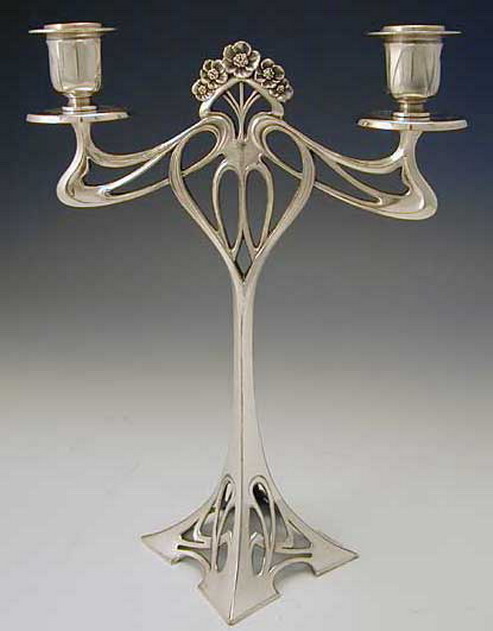Art nouveau silver candle holder