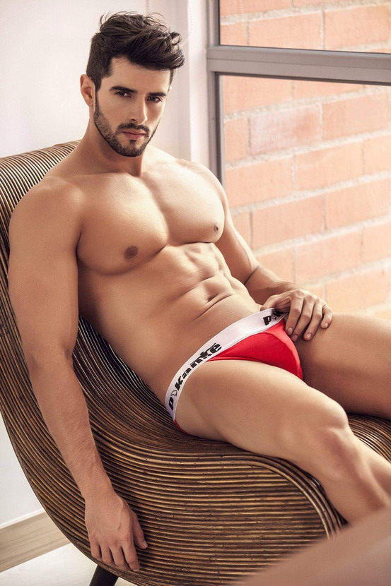 Models wearing red undewear