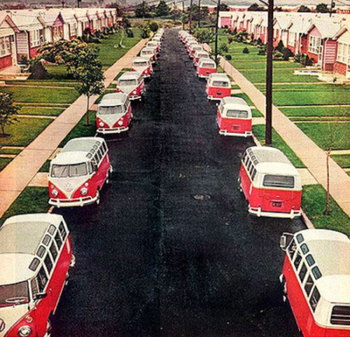A VW microbus in front of every home, circa 1960