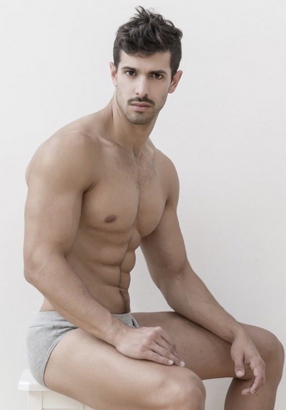 Shirtless mustachioed models