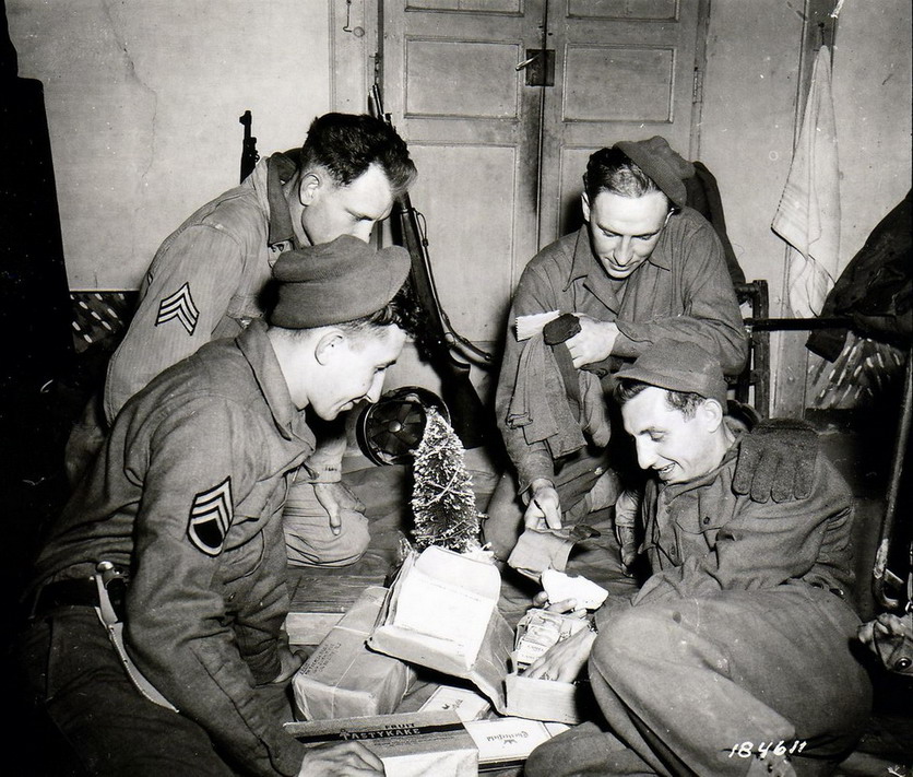 XMAS FOR TROOPS Published December 23, 2019 at 836 × 711 in Soldiers opening Christmas care packages, WWII