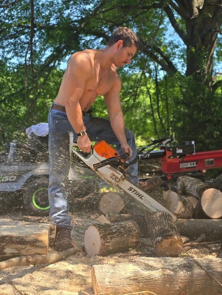 No, none of those guys are me. Although it’s great that guys take off their clothes for photo shoots I strongly recommend wearing clothing & eye protection while actually working with a chainsaw. My 2025-26 lumberjack season is now winding down, it runs from November to April. I’m not a logger and don’t do massive deforestation or use huge machines to transport logs. The type of work I do falls under “forest management” and arboreal landscaping. I cull out dead/diseased/dying trees, clean up blowdowns, open fields back up or expand them, cut trees away from houses or out of views of the ocean, etc. Any wood that I (or, actually, “we” since I work with an assistant) cut that is accessible to a road or driveway we stack up for the home/property owner or we load up into a truck and deliver to elderly residents. The island where I live is typically quite wet and vegetation immediately grows in to cut areas. I’ve never caused any erosion. The threat of forest fires is very real on this island that is 90% forest and I hope my work will help save some homes (million dollar plus vacation homes mostly as well as several dozen year-round homes) from destruction if we were to ever have a fire.