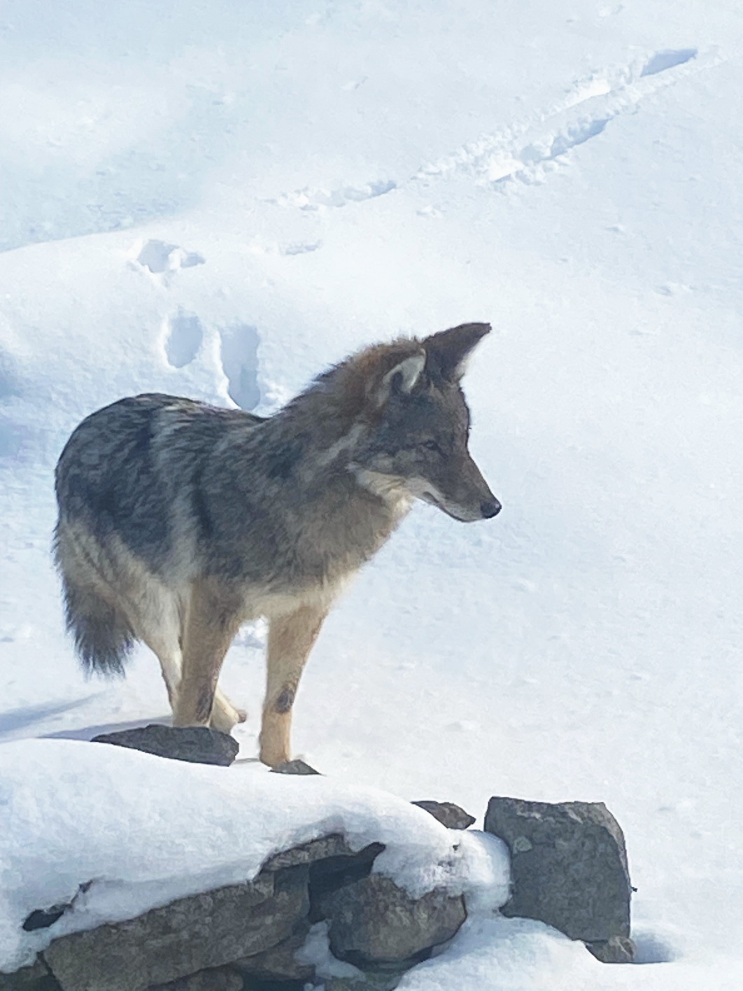 Although I see a lot of wild critters and birds since I live in the wilderness I don’t usually see things this close up. This coyote was no more than 10 ft/3 m outside my back door, which is solid glass. If I had opened the door it would have run away, not attacked me.
